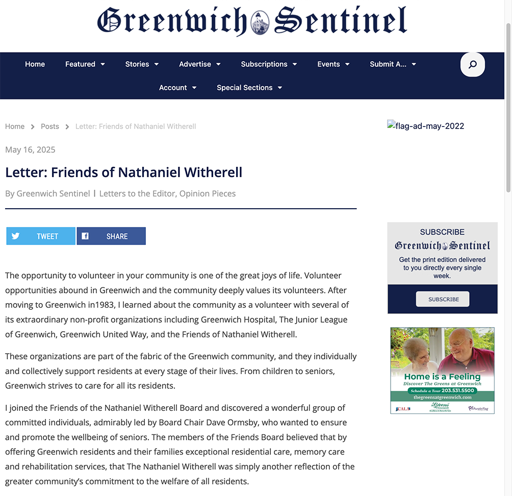 Discover the heart of our community with monthly editions of ‘The Witherell Times.’ This engaging newsletter edited by Friends of Nathaniel Witherell staff showcases the latest activities, highlights resident stories, and celebrates the people who make The Nathaniel Witherell so special. Distributed to residents and staff, each issue offers a glimpse into the events and connections that bring this community together.